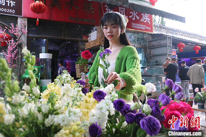 3月23日,安徽省合肥市裕豐花鳥魚蟲市場,“Z世代”女孩詹銀銀正在挑選鮮花,準備擺攤銷售。隨著氣溫回升,鮮花市場迎來一波熱度。記者近日在采訪中了解到,中國年輕人正在通過各種鮮花消費場景把春天“帶回家”,鮮花消費已突破固有的節日專屬儀式感,成為年輕人日常“悅己”的重要方式。中新社記者 張強 攝