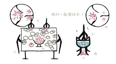 “《用甲骨文的方式打開春節》的靈感就來自于一位小學生粉絲的投稿。這位六年級小朋友經常和我們互動,他畫的甲骨文小人包餃子的場景畫面感和趣味感兼具,‘人’‘鼎’‘皿’‘火’字都包含其中,給了我們很多啟發。”黃麗潔說,“就在我們打算發布視頻的前一天,這位小粉絲給我們發來了他的手稿,我們都覺得眼前一亮,立馬將包餃子的畫面加入視頻當中。”