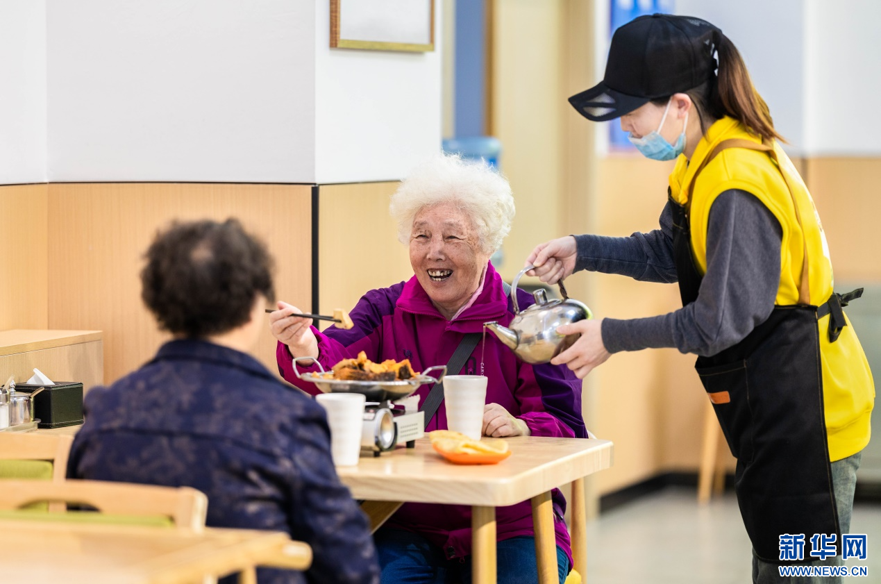 4月8日,老人在呼和浩特市玉泉區居家社區養老服務標準化示范中心“為老餐廳”內用餐。新華網發(丁根厚 攝)