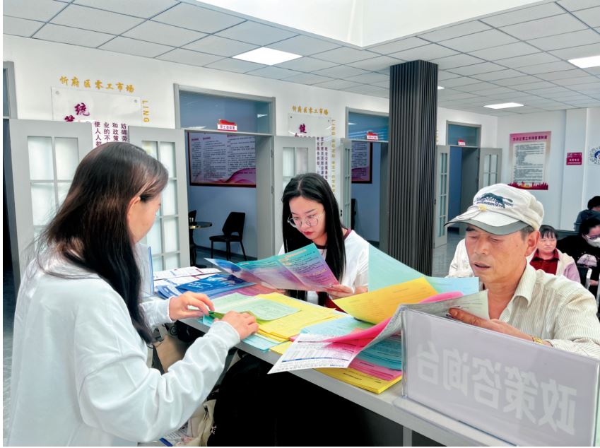 在零工市場服務(wù)大廳內(nèi),休息座椅、飲水機、急救藥箱一應(yīng)俱全,還提供免費茶水、免費WiFi、免費借閱圖書、工具租賃等便民服務(wù)。前來登記的求職者絡(luò)繹不絕,工作人員與志愿者指導(dǎo)他們填寫《求職人員登記表》,并重點填寫是否參加過職業(yè)技能培訓(xùn)、是否有參加技能培訓(xùn)的意愿,以便為供需雙方搭建平臺。