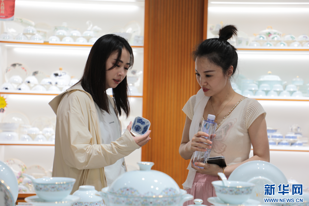 游客在欣賞各式瓷器。新華網發