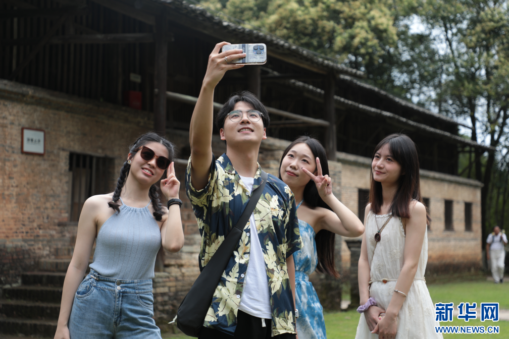年輕游客在景德鎮古窯民俗博覽區參觀拍照。新華網發