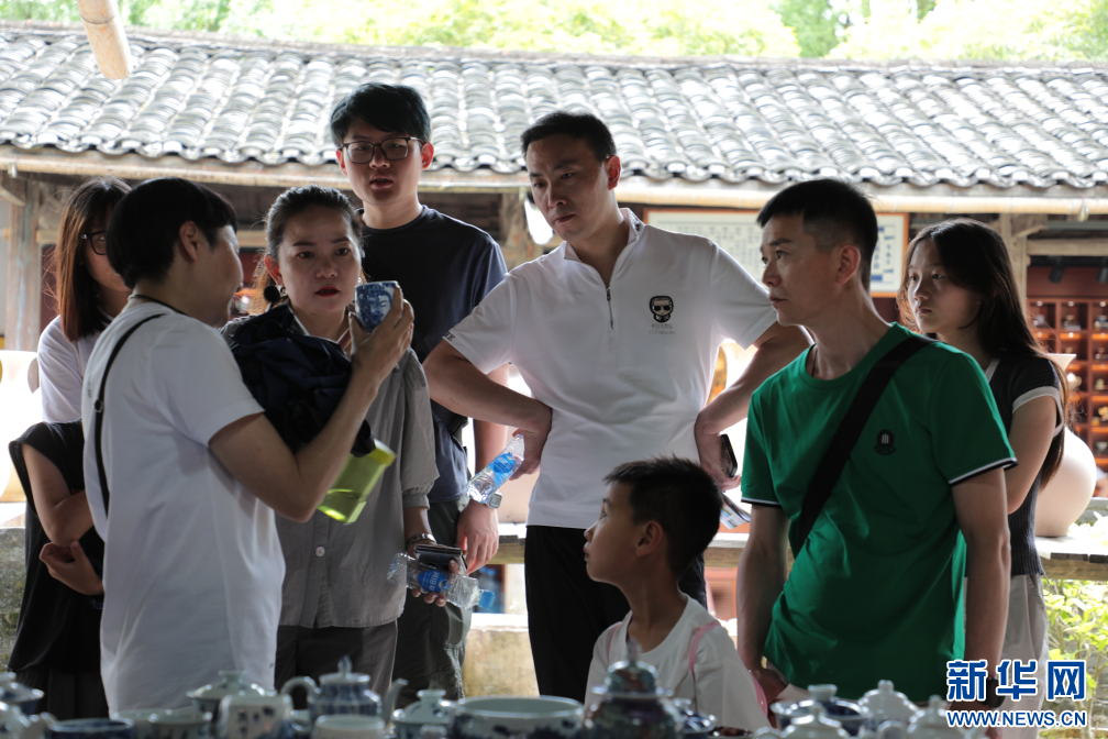 景區工作人員向游客介紹陶瓷作品。新華網發