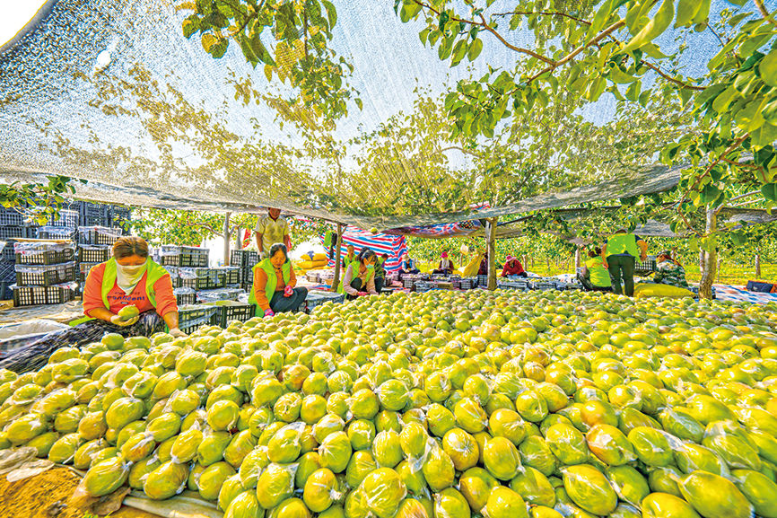 上留村玉露香梨豐收場景。亞明攝