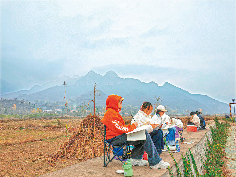 雖然已時近立冬,但來自晉中學院的一百多名師生仍堅持每天外出寫生。“這里是太行山中段最雄美的地方,來到這里可以讓學生們接受大自然的洗禮,同時感受地方文化,讓他們積累創作素材的同時了解農村、熱愛農村。”晉中學院國畫老師孟冠華說。