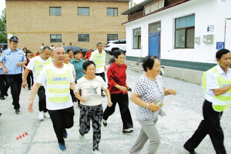 7月1日,一場模擬平定縣城突降暴雨的演練開始。東大街東升路段排水系統發生堵塞,造成大面積積水。搶險人員有的在擺放警示標志牌,封鎖積水道路,提醒行人和車輛繞道通行;有的使用移動泵車、管道疏通車、吸污車等,抽排積水……經過緊張配合,險情被排除。