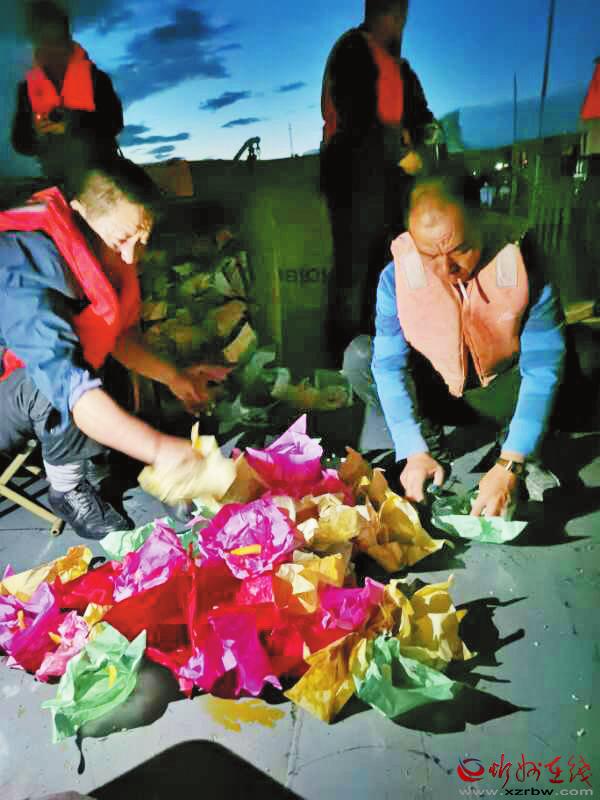 一盞盞花燈放入河中。色彩艷麗的河燈順著黃河主航道向前漂移,燈點(diǎn)綴河,河簇?fù)頍簦瑹o比壯觀。從早先放365盞燈,到現(xiàn)在的3650盞燈,場面更加宏大輝煌。