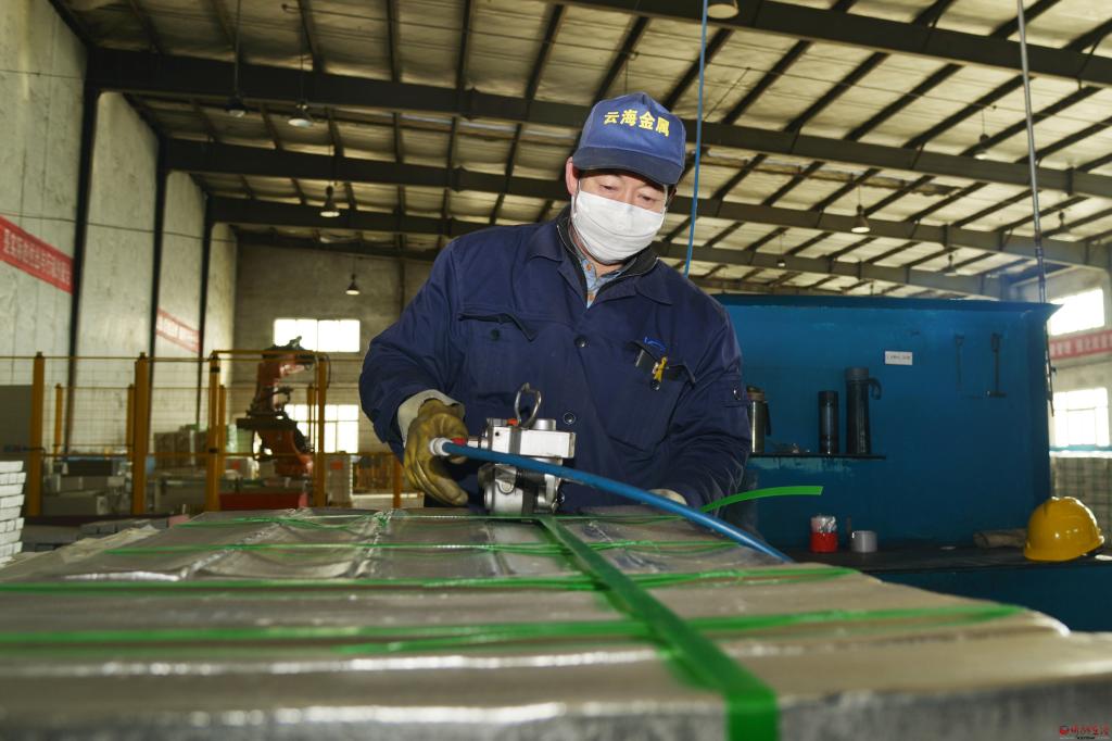 五臺云海鎂業工人正在打包產品。 張存良 攝