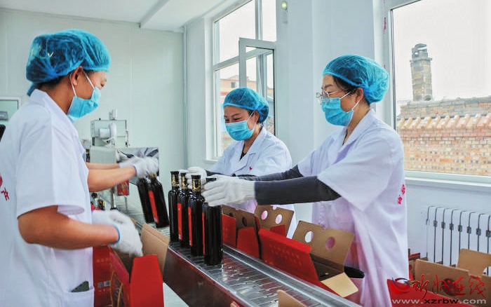 脫貧勞動力正在幫扶車間里包裝產品。 本報通訊員攝