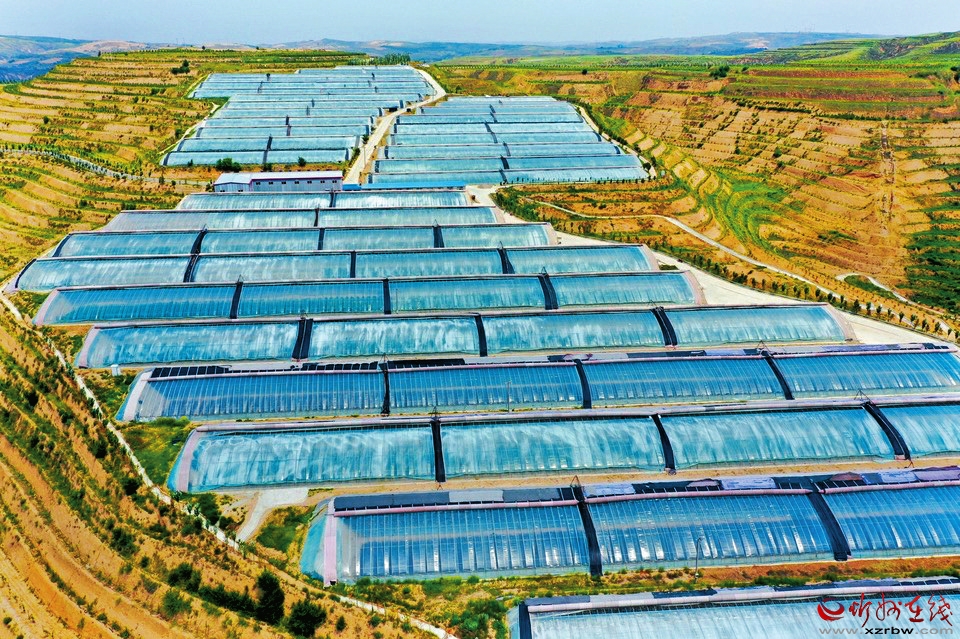 峁梁之間,溝壑縱橫。下了高速,路隨峁轉(zhuǎn),快到榆嶺窊,車窗外的風(fēng)景也變了,密集閃過一排排人造林。上峁放眼,溝梁之間,成片的日光溫室大棚宛如湖泊,在冬日暖陽下反射出粼粼波光。大棚之上,這邊一排排白墻灰瓦是別墅群,那邊人才公寓緊挨著老年公寓,飄揚著鮮艷國旗的地方是榆嶺窊村黨群服務(wù)中心。