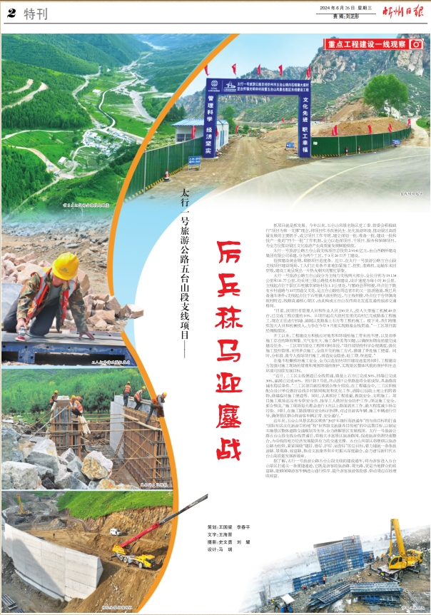 搶抓建設黃金期,刷新項目進度條。近日,在太行一號旅游公路五臺山段支線項目建設現場,工人們正有條不紊地加緊施工,挖機、裝載機、運輸車來回穿梭,建設工地呈現出一片熱火朝天的繁忙景象。