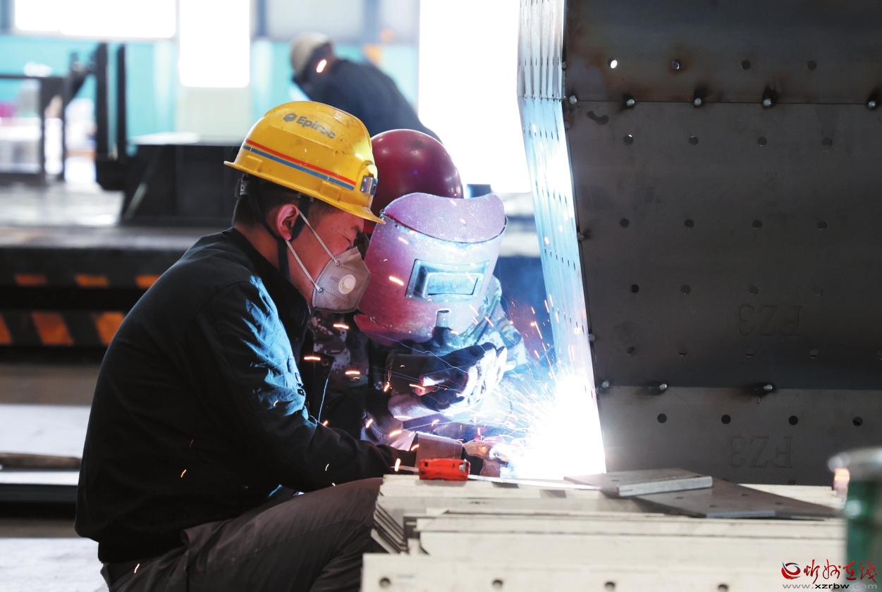 在久力科技的機械加工車間,工作人員正在對零部件進行焊接作業。記者范琛攝