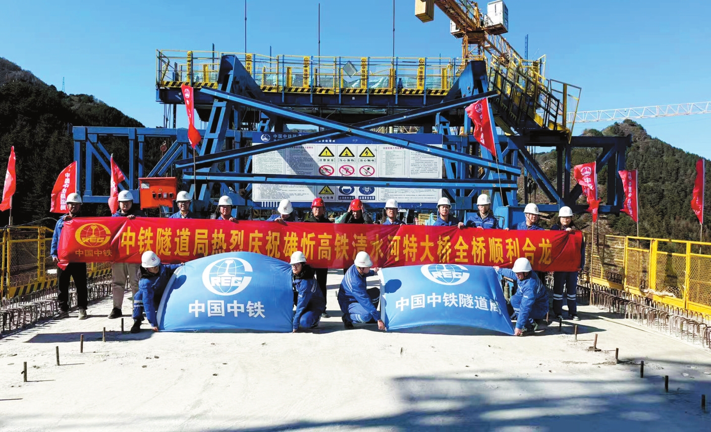 自2023年3月16日首根樁基開鉆以來,中鐵隧道局集團(tuán)建設(shè)團(tuán)隊(duì)晝夜奮戰(zhàn),始終秉持“超前策劃、高效執(zhí)行”的建設(shè)理念。為保障施工安全與工程質(zhì)量,團(tuán)隊(duì)多次邀請國內(nèi)橋梁領(lǐng)域?qū)<疑钊氍F(xiàn)場踏勘,開展技術(shù)論證,針對不同施工方法量身定制專項(xiàng)安全方案,有效化解施工難度大、安全風(fēng)險(xiǎn)高、工期任務(wù)緊等多重挑戰(zhàn),最終嚴(yán)格按照既定計(jì)劃圓滿完成全橋合龍,展現(xiàn)了高鐵建設(shè)的“中國速度”與“中國質(zhì)量”。