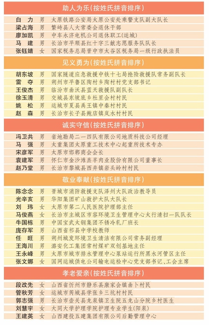 本報訊(記者李煉)近日,記者從省文明辦獲悉,經各市、省直各工委文明辦推薦,省文明辦研究,2023年下半年“山西好人”評選揭曉。