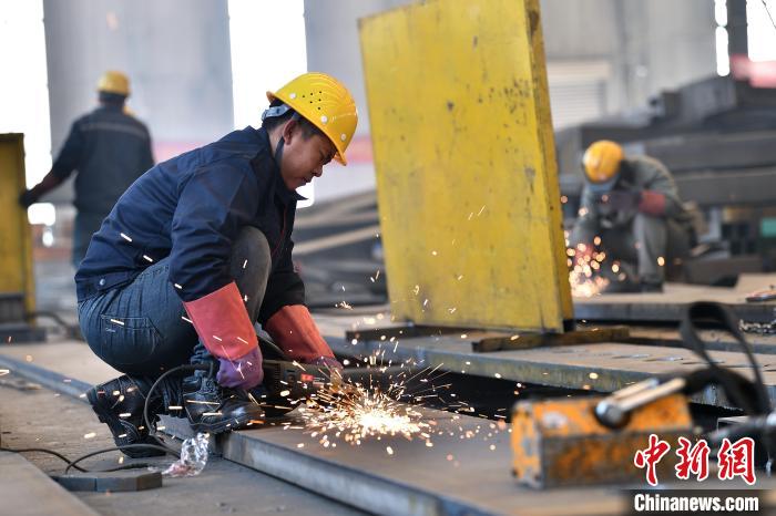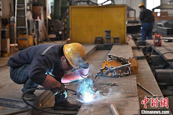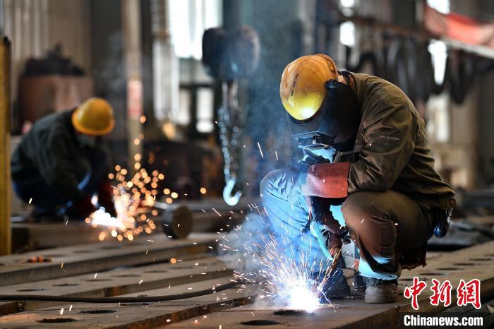工人在車間氣保焊作業。 中新網記者 韋亮 攝