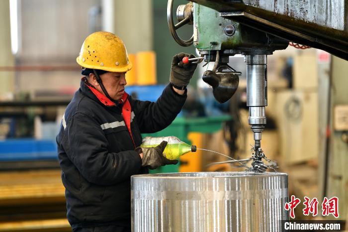 2月29日,山西省太原市,太原華冶公司工人在車間生產作業,加工螺旋焊管、直縫焊管機組設備。2024年以來,該廠出口訂單穩步增長,產品銷往美國、巴西、南非、印度、馬來西亞等國家。春節過后,該廠出口訂單積壓較多,工人開工后便投入緊張生產中,確保按時交付訂單。