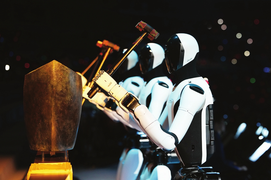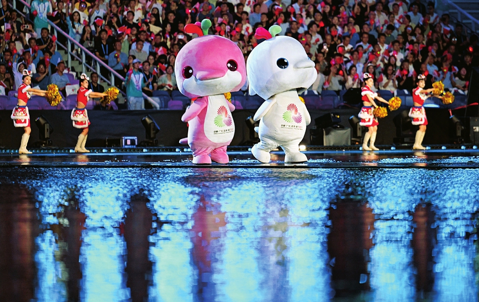 第十五屆全國運動會吉祥物“喜洋洋”和“樂融融”在開幕式現場表演。圖片均為開幕式表演現場。 本版圖片均來源新華社