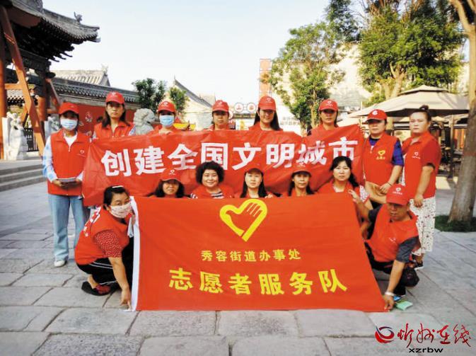 聚是一團火,散是滿天星。一個微笑、一份禮讓、一只援手,都是志愿服務精神的繽紛綻放。也許,一個人的力量是有限的,但榜樣帶給市民的正能量是無窮的。古城游客紛紛表示,作為忻州人,在創建文明城市過程中,要當好文明古城的傳播者,主動傳遞文明新風,用自身的行動帶動更多的朋友們參與到文明創建中。從我做起,從小事做起,讓志愿服務在忻州古城久行成風、眾行成氣,匯聚文明向上的力量,為文明城市創建精彩代言。圖為秀容辦志愿者服務隊在忻州古城泰山廟廣場。 (本報記者 王國梁)