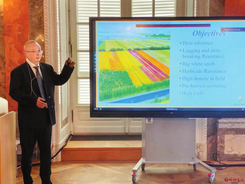 2024 年7 月,武祥云在德國藜麥論壇上發言。受訪者供圖