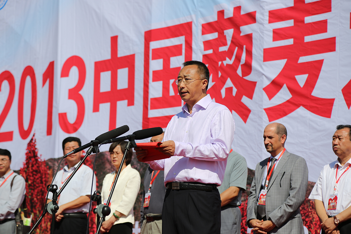 武祥云在靜樂藜麥豐收節致辭。受訪者供圖
