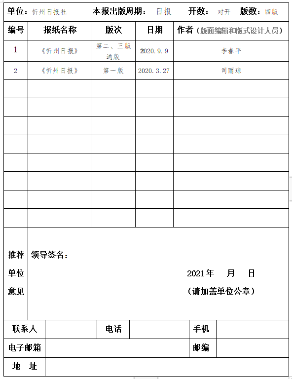 第三十屆山西新聞獎(jiǎng)報(bào)紙副刊作品初評(píng)暨2020年度山西報(bào)紙副刊年賽參評(píng)作品目錄