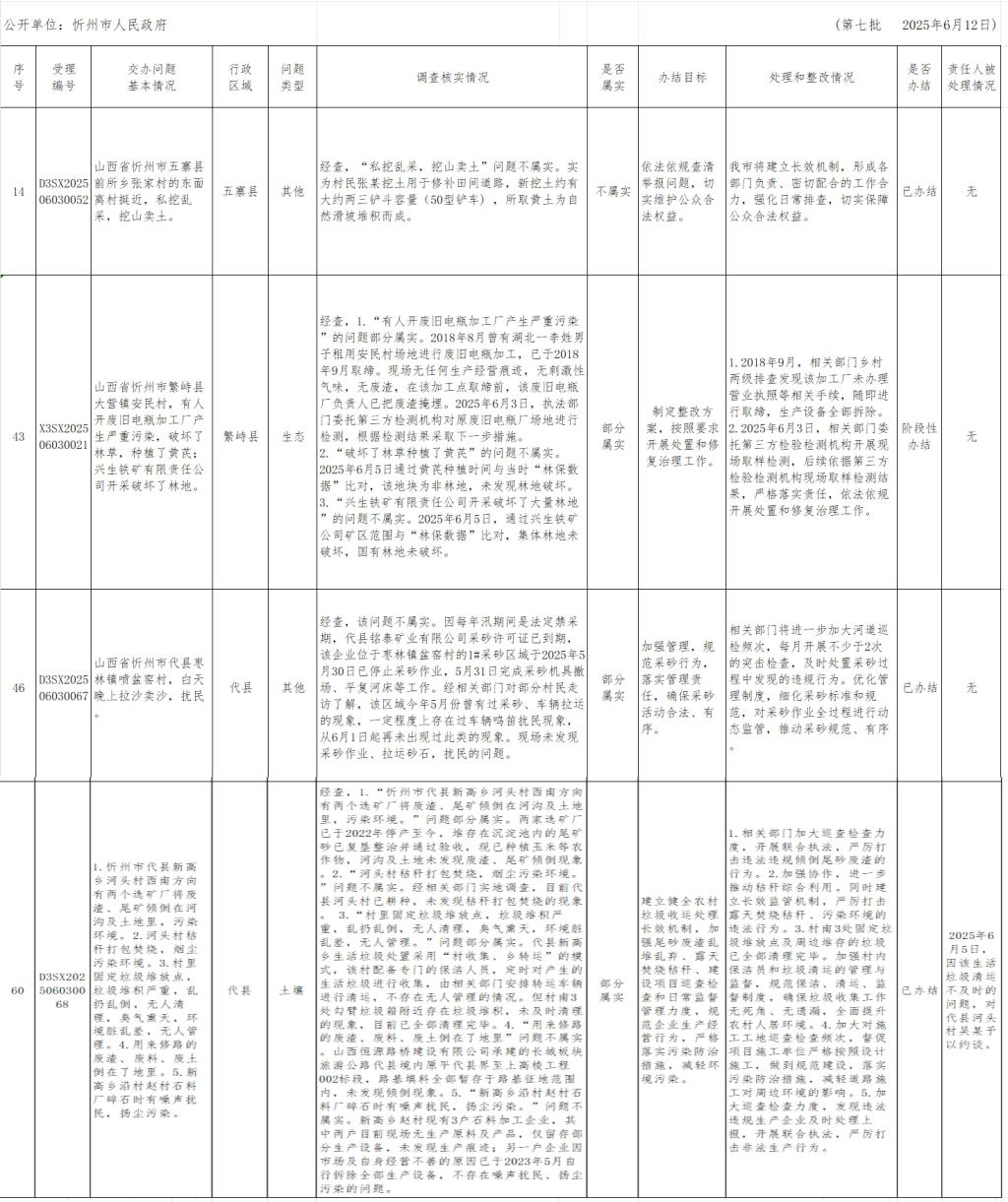 中央生態環境保護督察組群眾信訪舉報轉辦和邊督邊改公開情況一覽表