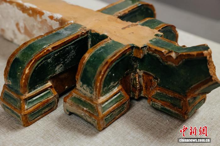 此次“上新”展品中,漢千秋萬代印文磚、明黃綠琉璃斗拱、開封開寶寺塔坐佛醬色釉面磚等16件文物首次走出清華大學、來到武漢展出。黃釉、綠釉琉璃滴水上的淺浮雕云龍紋姿態(tài)靈動,蓮花紋瓦當、鬼瓦等文物雕飾精妙。5件營造學社題寫殘片,分別清晰地標有“漢長安城西南角墻頭上”等字樣,訴說著中國營造學社調查古建的足跡。