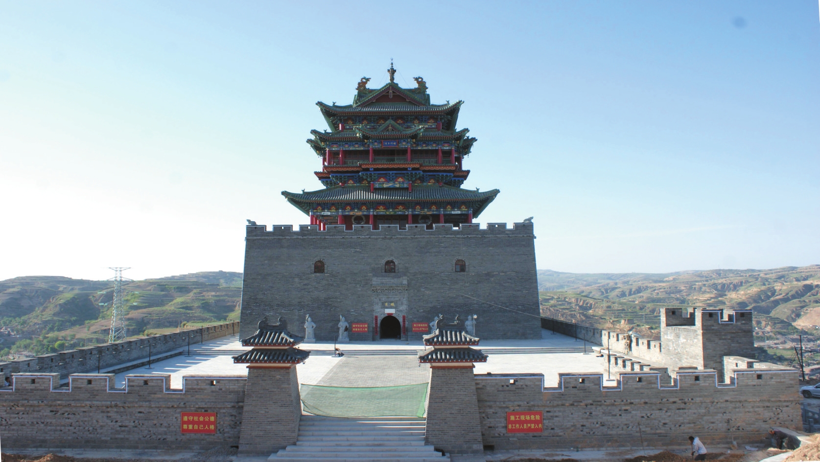 2011年至2012年,護城樓于原址復建為鋼筋混凝土仿古建筑。新建城堡南北長70米、東西寬36米,堡東開一拱門,外包磚,內填素土并夯實,城墻上砌筑垛口。護城樓為方形,通高28.8米,其中墩臺高12米、寬28米;樓身高19米、寬20米。