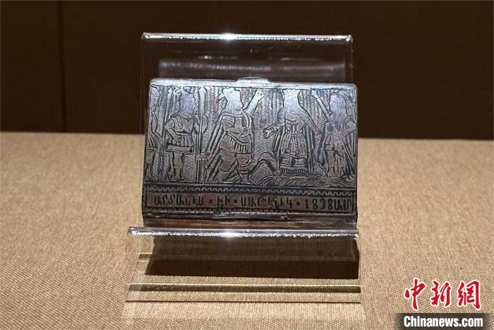展覽展出的1898年印有銘文的銀質煙盒,小巧實用,上面刻有“1898”及亞美尼亞文字“阿爾塔什斯”“薩特尼克”。據悉,阿爾塔什斯王朝的建立者阿爾塔什斯一世和阿蘭王女兒薩特尼克公主的故事,可追溯至公元前2世紀,他們的婚姻被視為不同民族和文化統一的象征。