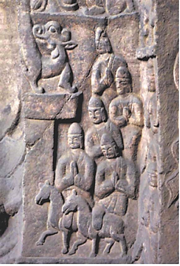 隨著5世紀北魏國力的強盛,西域各國使者、僧侶、商人、工匠及其親屬沿絲綢之路到達平城。他們和漢、鮮卑等民族共同發展了這一地區的農牧業、手工業和商業,各種文化碰撞融合、相得益彰。絲路上穿梭往來的商隊和使團不僅帶動了商業貿易的繁榮,更帶來了物質、思想、藝術、技術的交流,在塑造北魏多元一統的文化面貌中扮演了重要角色。云岡石窟第16—1窟的西域商隊圖,正是這段歷史的生動注腳。(武 夏)