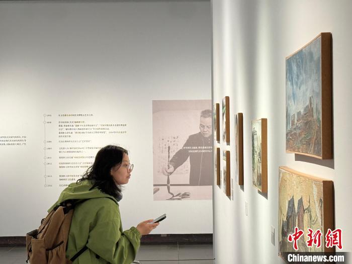 天行健——梁江“學(xué)者書(shū)畫(huà)”50年廣州展16日在廣東美術(shù)館開(kāi)幕。方偉彬 攝 此次廣東美術(shù)館動(dòng)用一層四個(gè)展廳布展,分“路在足下”“攀高臨遠(yuǎn)”“以學(xué)養(yǎng)書(shū)”“移情入畫(huà)”四大版塊,以300余件文獻(xiàn)資料、中國(guó)畫(huà)及書(shū)法作品的規(guī)模,全面呈現(xiàn)了梁江從藝50多年來(lái)的藝壇履跡、史論著述、書(shū)法作品和繪畫(huà)創(chuàng)作等專(zhuān)業(yè)領(lǐng)域的豐碩成果。展覽內(nèi)容豐富,有少見(jiàn)的文獻(xiàn)和照片資料、筆力雄健的書(shū)法和清新靈動(dòng)的繪畫(huà)。 參加開(kāi)幕式的廣東省美術(shù)家協(xié)會(huì)主席林藍(lán)表示,梁江的藝術(shù)人生與改革開(kāi)放同頻共振,是廣東美術(shù)界的驕傲,也是中國(guó)美術(shù)發(fā)展的縮影。