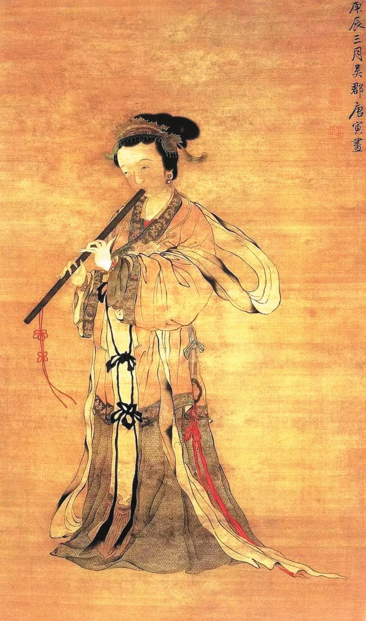 唐代稱笛聲為“龍吟”,稱簫為“鳳簫”。以龍鳳稱笛簫,可見這兩件竹樂器在眾多樂器中的地位。李白詩云:“笛奏龍吟水,簫鳴鳳下空。”其實,簫和笛在吹奏方式上明顯不同,笛子要橫著吹,簫要豎著吹,而且簫音量較小,音色輕柔,比起笛子的音色,更有一種幽怨之意。相傳在當年的垓下之圍中,張良就用簫勾起了楚軍將士的思鄉之情。篪也是一種需要橫吹的樂器,但是開口在管的中間,吹奏時持管的方式有點像在舉杠鈴。