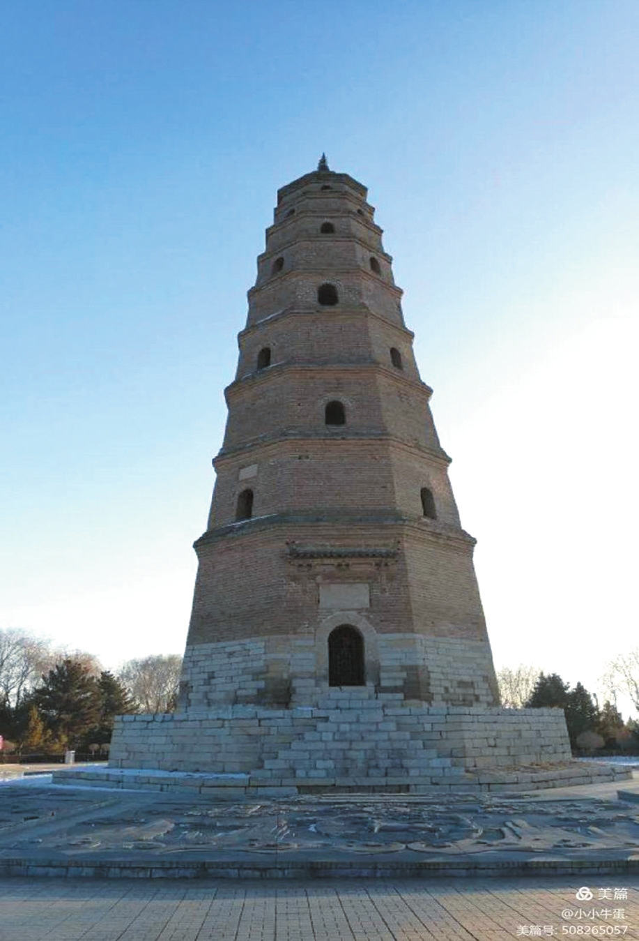 偏關縣城東山上的文筆塔,又稱“文筆凌霄塔”,是一座保存完好的空心磚塔。始建于明朝天啟元年(1621),原為一座七層磚石結構八角雁塔。崇禎八年(1635)加高四層,共十一層,上書“文筆凌霄”字樣。塔高35米,塔底周長29米。清代咸豐七年(1857)文筆凌霄塔因風雨侵蝕嚴重。新中國建立以后,偏關人民又重修寶塔。 近年來,偏關縣政府大力開發旅游資源,以塔建園,形成了獨具特色的文筆塔生態公園景觀。這座塔被人們視為偏關的象征,是市級文物保護單位。 (責任編輯:盧相汀) |