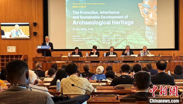 當地時間7月12日晚,第47屆世界遺產大會“考古遺產保護傳承與可持續發展”邊會在巴黎舉行。 主辦方供圖