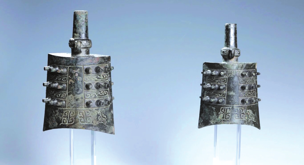 最具代表性的樂鐘無疑是“青銅之冠”的曾侯乙編鐘,它展現了先秦禮樂文明與青銅鑄造技術的最高成就。曾侯乙編鐘是戰國早期曾國國君的“禮樂重器”,1978年出土于今湖北隨州的曾侯乙墓,是迄今發現數量最多、保存最好、音律最全、氣勢最宏偉的一套編鐘,共65件,分3層8組懸掛于彩漆鐘架之上,鐘體總重達2.5噸。整套編鐘低音渾厚、中音圓潤、高音清脆,音域寬廣,而且中心音域內半音齊備,可以旋宮轉調,演奏各種音樂。1978年8月1日,沉寂了2400多年的曾侯乙編鐘演奏了《東方紅》《國際歌》和古曲《楚殤》、民族歌曲《草原上升起不落的太陽》等各種樂曲,樂音悠揚回蕩。