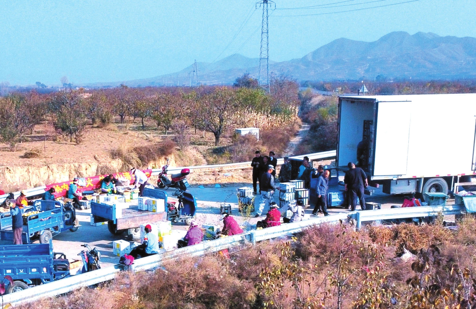 11月13日,原平市同川鎮上莊村果農正將優質酥梨裝車發往河北等地。近年來,該市走品牌農業和綠色種植路子,以農業高質量發展帶動農民增收。(