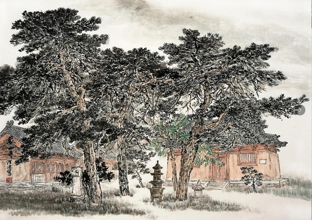 后來因為他繪畫上取得的成績,調到了忻府區文聯工作。條件好了,畫的畫更多了,畫風依然樸實親切,給人一種視覺的舒適感。這幾年他是在一路前進的,他筆下的線條清朗有力,墨色變化也更加豐富,畫中有了渾厚華滋的氣象。細看他的畫,樸實中蘊藏著精巧,拙拙的行筆中偶露鋒厲,給畫面帶來活力生機。我們在一起寫生,他在畫面經營上、構圖處理上總能給人意想不到的驚喜。畫面虛實處理把握的恰到好處,又能準確表現自然原貌的神采。于不知不覺中將自己的審美和情感融入了畫中,完成的寫生總比自然景色更加生動、更吸引人的目光,但又讓你看不出他是在哪里做了手腳。