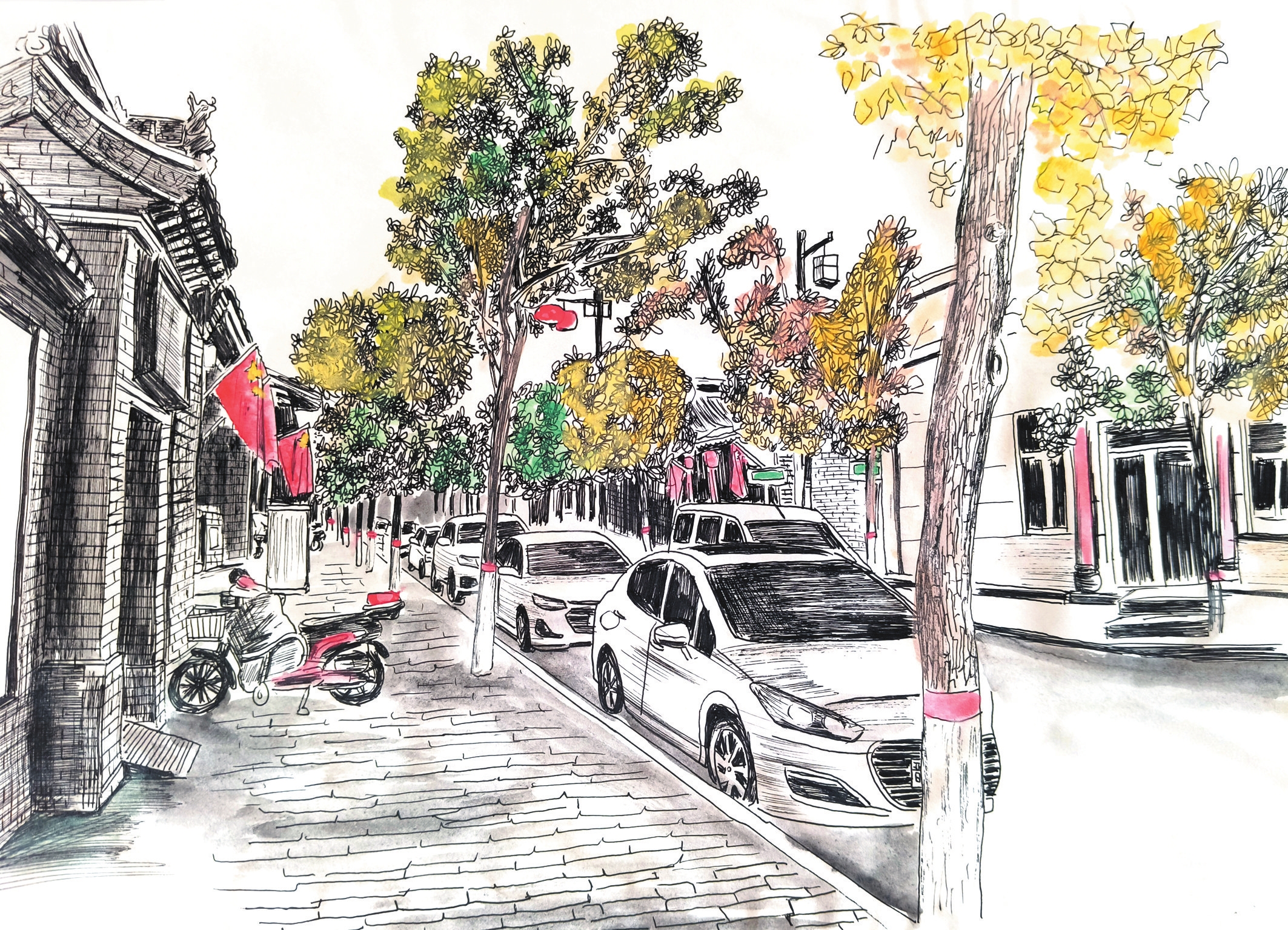 侯龍飛用鋼筆畫記錄城市變遷,他的作品中不僅有地標建筑和消失的城中村,還有重獲新生的工業遺址,每一幅畫都承載著他對故鄉的深刻記憶和深情眷戀。侯龍飛說,鋼筆畫的特點是不可更改,因此每次進行創作時都需要“意在筆先”,一氣呵成。