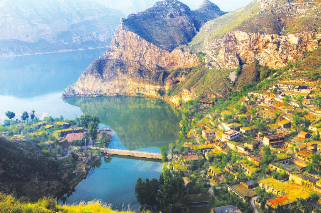 在黃河上形如半島的一個回水灣上,清清的關河水從東邊流來,匯入了黃河。對面是高山和村莊上的排排石頭窯洞,一層一層地排列在緩坡的綠蔭里。河邊有果圃,河中有捕魚船,關河上還有石拱平面橋,過得去卡車,更過得去羊馬驢騾。從山水形勢上看,這里是高崖深壘,有渡口,從大面上看是一個死角,然而又是一個興于明盛于清的重要水旱碼頭,有長城、有烽火臺和古堡。康熙四十年(公元1701年)西北放墾,這里成為北糧進入晉地的轉運點。北上的晉商也由此進入黃河上游,關河口也就成了糧食、茶葉、布匹和皮毛、牲畜交流互換的水上集散地。