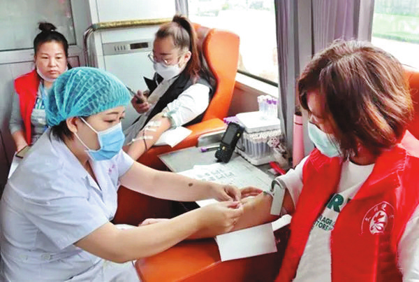 9月4日,小雨。河曲縣青年志愿者協會的志愿者們一早就來到獻血車前,在工作人員的指導下,按流程填寫資料、測量血壓、采血,有序等候獻血。在獻血隊伍中,有多次獻血的“老將”,也有初次上陣的“新兵”,鮮血隨著愛心流淌。當天,23名青年志愿者獻血總量達8800毫升。(劉宇婷 攝)