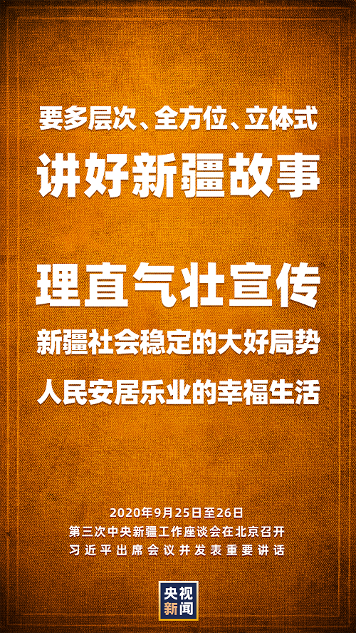 第三次中央新疆工作座談會9月25日至26日在北京召開。中共中央總書記、國家主席、中央軍委主席習近平出席會議并發表重要講話。 20字方針