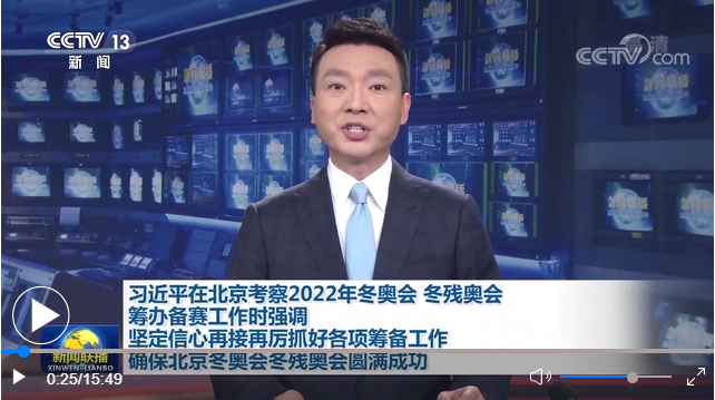 | 習近平在北京考察2022年冬奧會、冬殘奧會籌辦備賽工作時強調 堅定信心再接再厲抓好各項籌備工作 確保北京冬奧會冬殘奧會圓滿成功 韓正陪同考察 |
