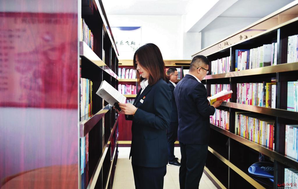 近日,五臺農商行舉辦讀書活動。設施齊全、安靜溫馨、滿溢書香的閱覽室,為大家營造了一個良好的讀書氛圍。愛讀書、讀好書、善讀書已成為員工們的一種生活常態。(閆澤峰 攝)