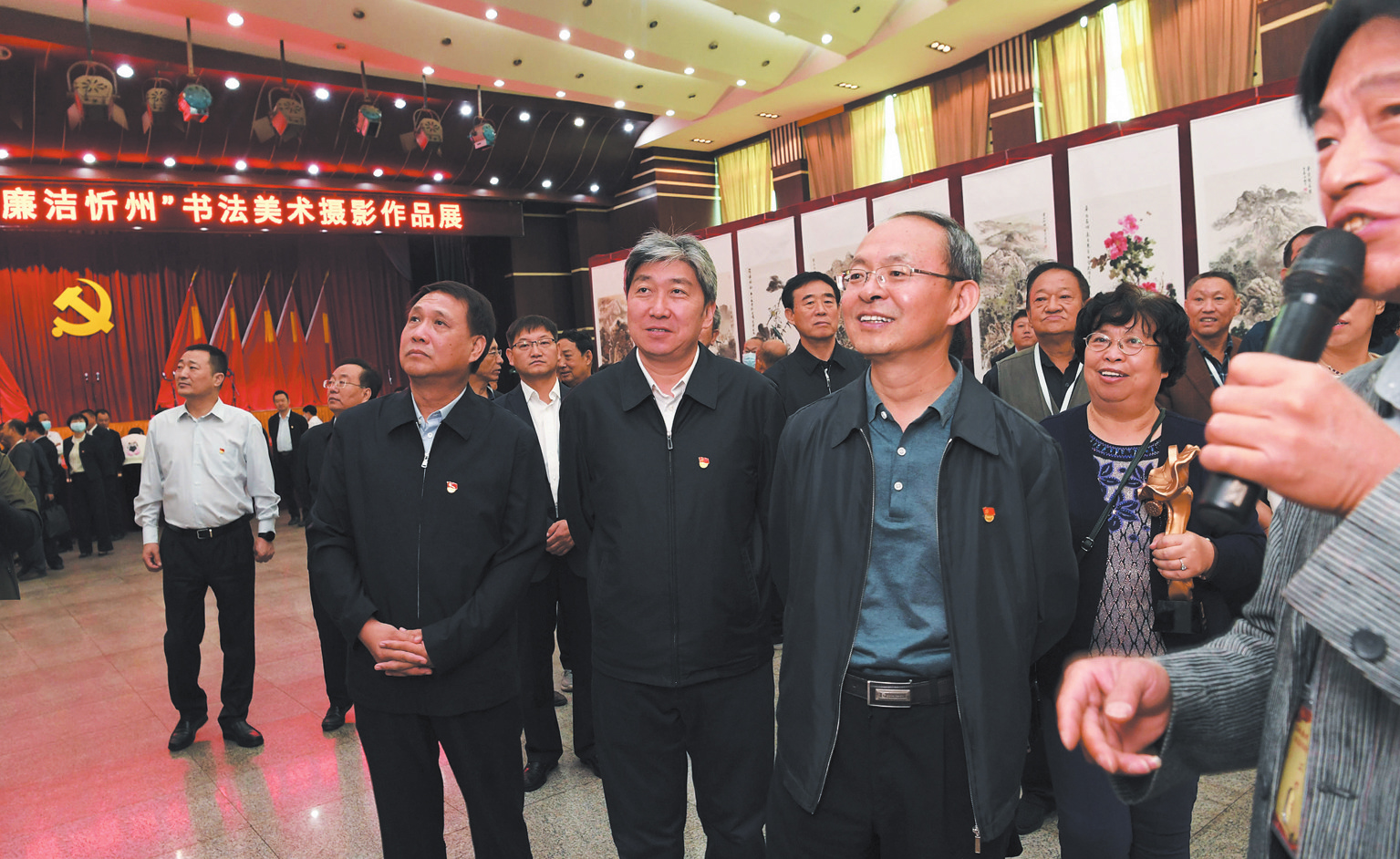 開展儀式上,市領導為迎國慶“清風雅頌·廉潔忻州”書法美術攝影作品展一等獎、二等獎、三等獎的獲獎作者頒發了獎杯和證書。