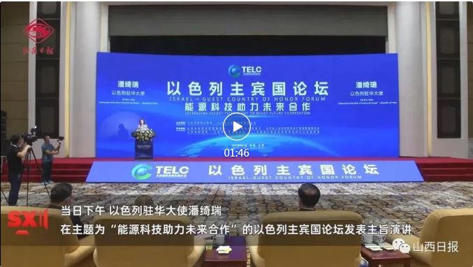 在高峰論壇發表主旨演講;與太原市市長共同種植友誼樹30棵并樹立紀念碑,寓意中以30年合作取得豐碩成果;出席以色列分論壇與能源產業B2B對接會......作為以色列駐華大使,潘綺瑞和她所代表的以色列“主賓國”之旅很是繁忙。
