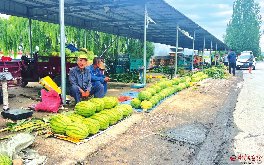 市場(chǎng)有回響,品質(zhì)過(guò)硬銷路旺。在村里的瓜果交易市場(chǎng),75歲的鄔培林?jǐn)偽磺埃慌排艂€(gè)頭飽滿的西瓜格外顯眼。有著多年種植經(jīng)驗(yàn)的他對(duì)市場(chǎng)行情了如指掌:“西瓜上市半個(gè)多月了,剛開(kāi)始賣兩元一斤,現(xiàn)在是6角一斤,正在陸續(xù)降價(jià)。”雖然價(jià)格隨上市時(shí)間有所回落,但西瓜品質(zhì)好不愁銷路。