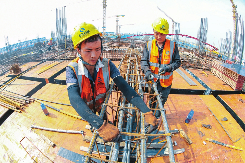 10月1日,建筑工人正在運城市會展中心項目建設工地做基礎施工。國慶長假期間,承建總建筑面積82萬平方米會展中心項目的運城市建工集團200余名建筑工人,堅守施工一線,嚴格按照時間表、路線圖,采取人休機不停的晝夜輪班制施工,確保重點項目的有序推進。(姜樺攝)