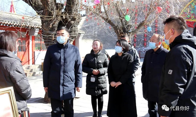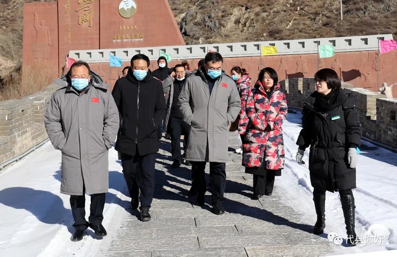2月4日忻州市代市長李建國前往代縣,深入到雁門關風景區和代縣縣城各旅游景點,就該縣文旅產業發展情況進行調研。市政府秘書長張艮生,代縣縣委書記張生明,縣委副書記、縣長溫安娜,副縣長陳文秀一同調研。