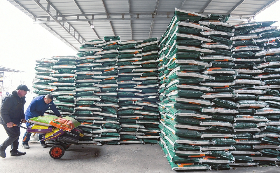 2月24日,長子縣清風農資連鎖有限責任公司院內,工人在搬運化肥。隨著春耕生產臨近,該公司開通綠色通道,24小時不間斷作業,加快化肥裝卸、轉運,全力保障春耕備耕。梁棟攝