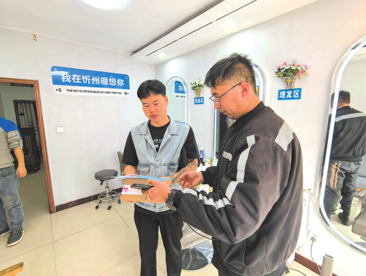 忻府區(qū)快遞小哥參與“順手捎帶”志愿服務(wù)活動。